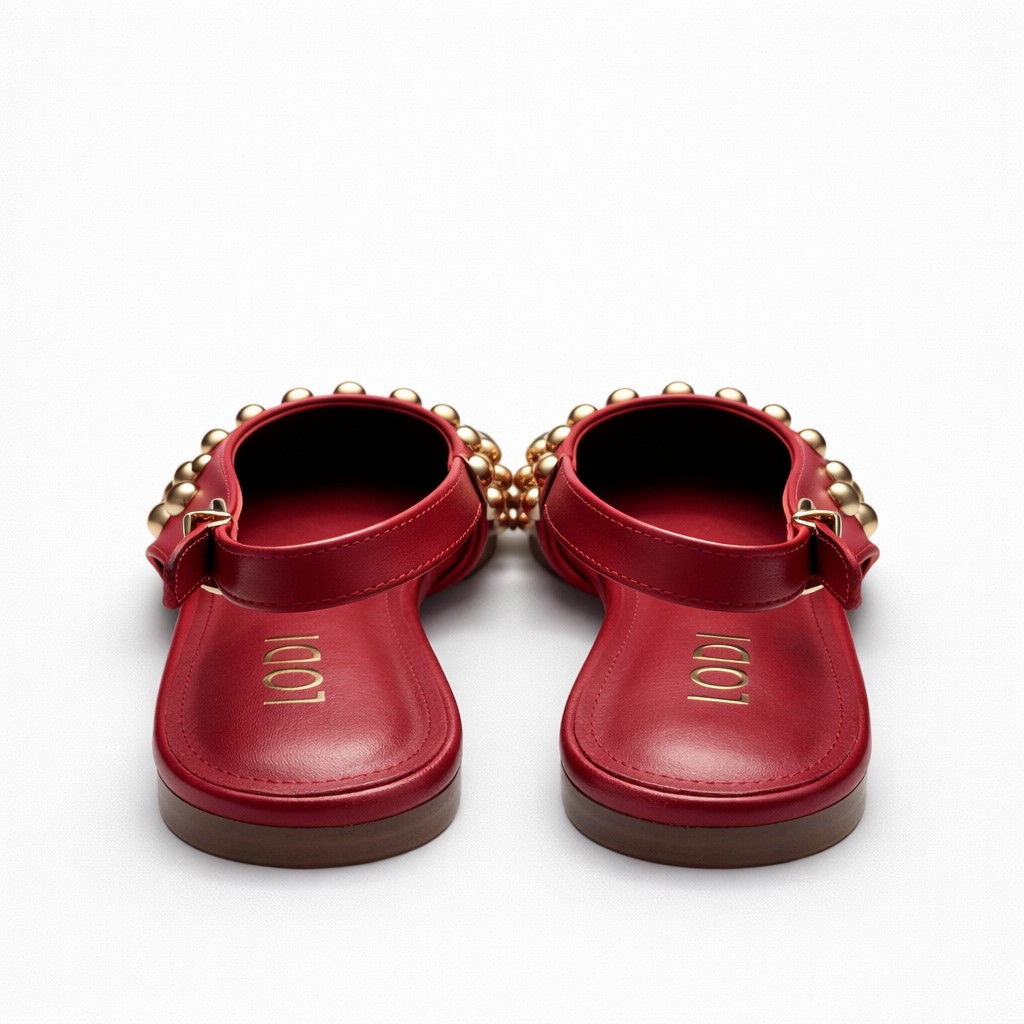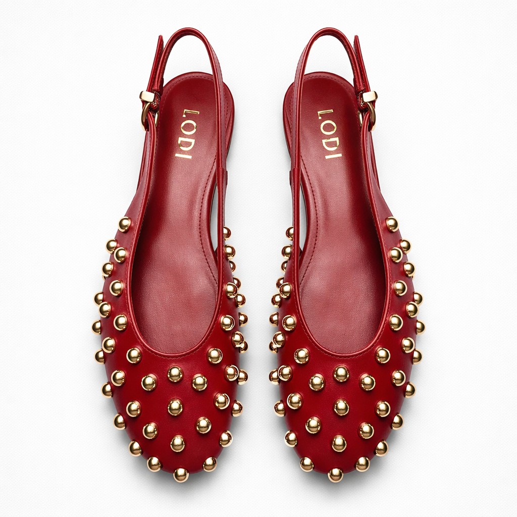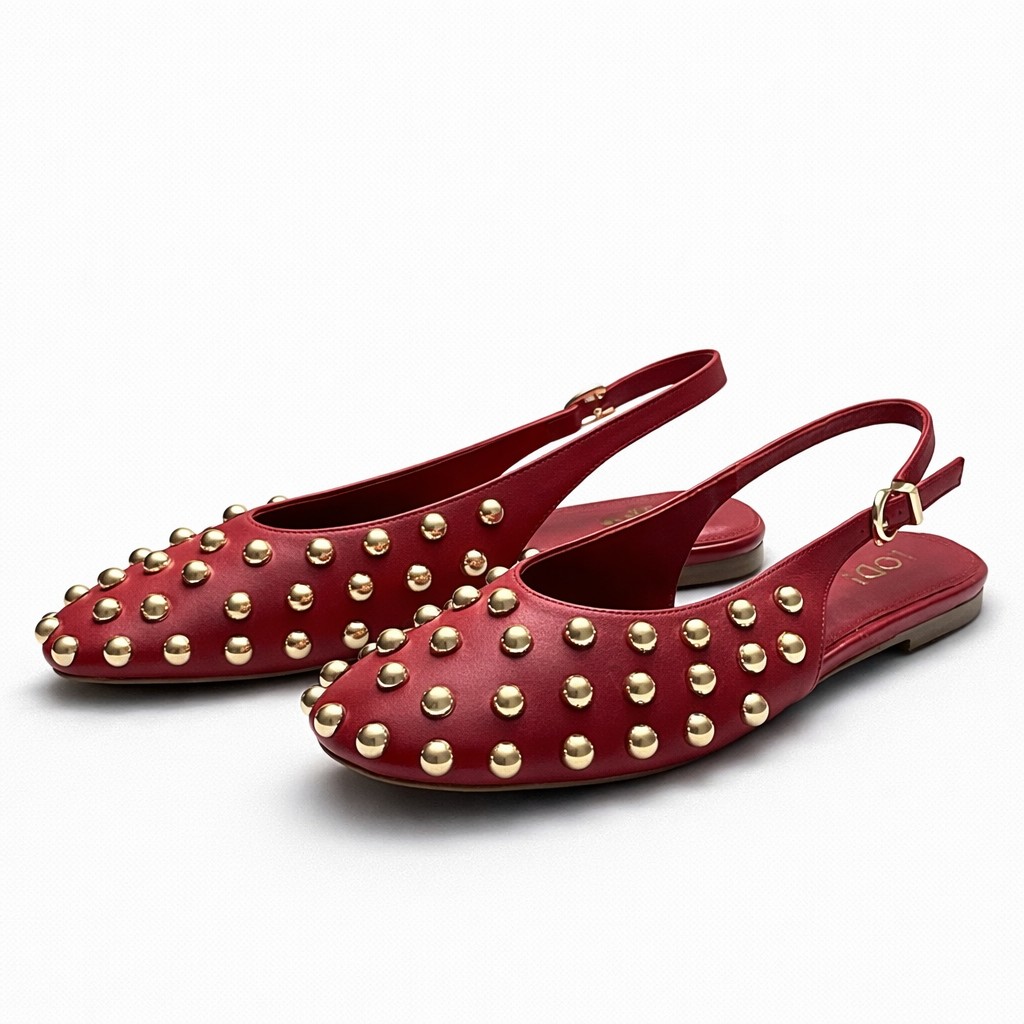 NUEVA COLECCIÓN.(zapato de muestra) Bailarina roja tachas oroDisponibilidad: 1 disponibles