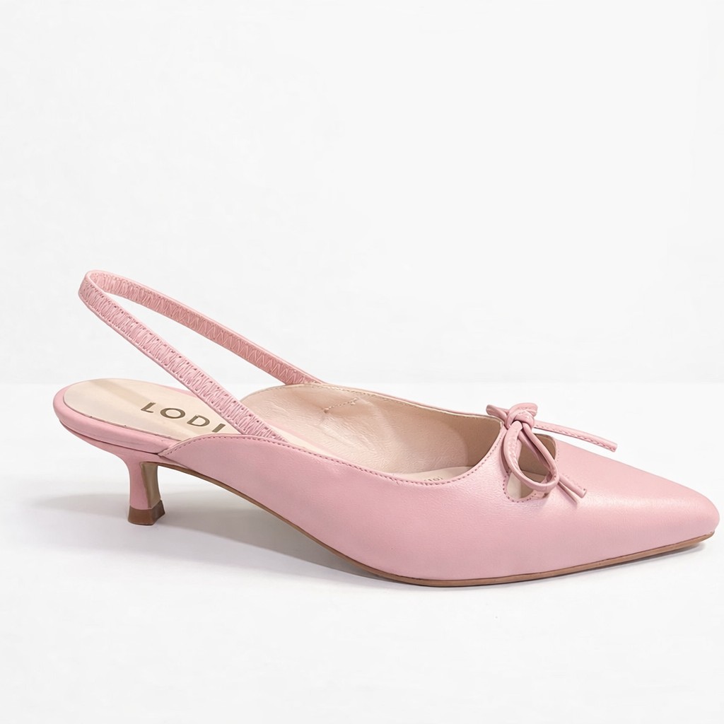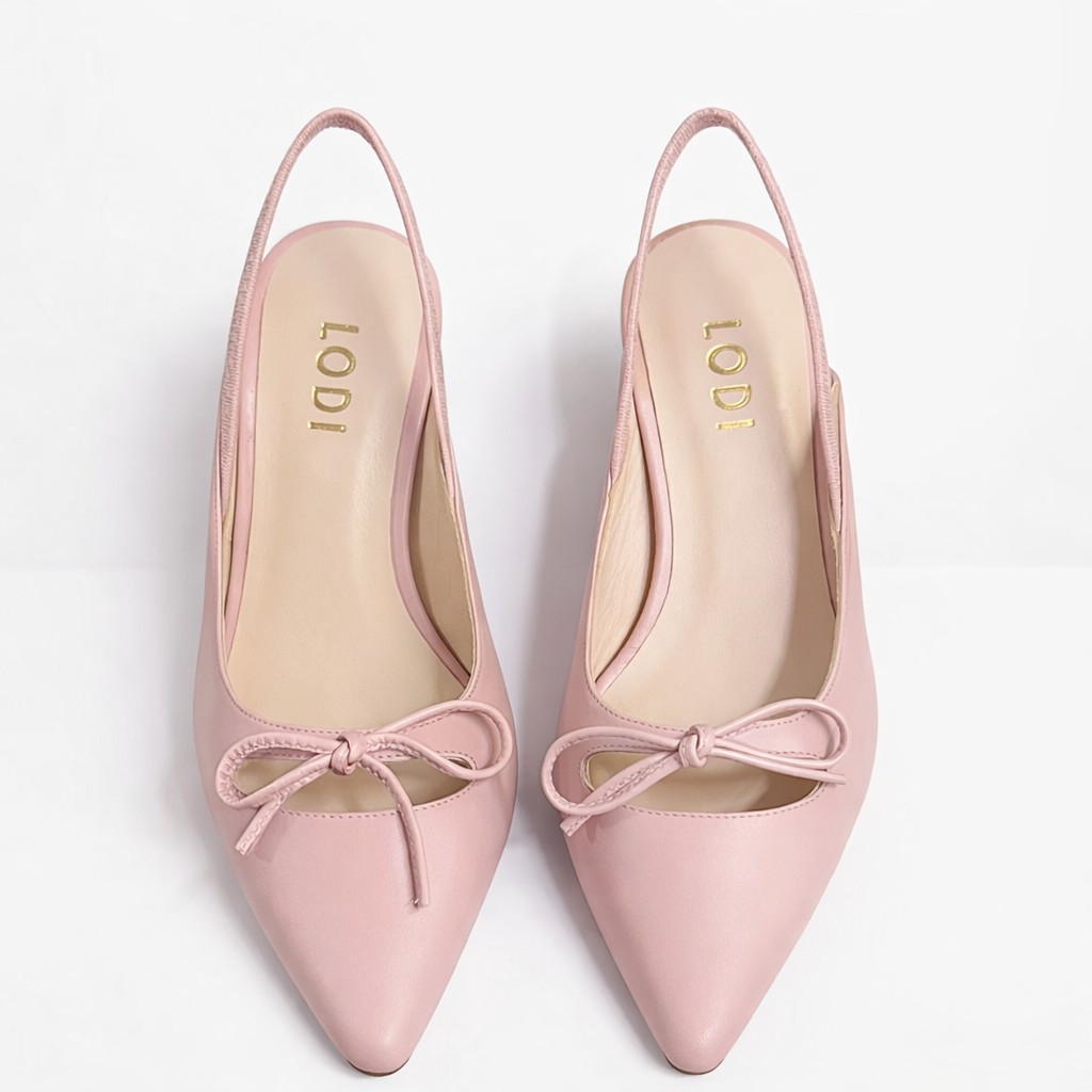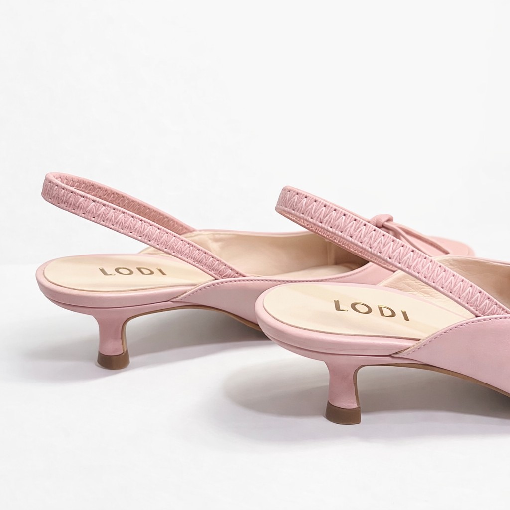 Elegante zapato destalonado de la firma **LODI**, diseñado para aportar un toque delicado y sofisticado a cualquier look. Confeccionado en piel de alta calidad en un suave tono rosa empolvado, destaca por su acabado fino y femenino, ideal tanto para el día como para ocasiones especiales.